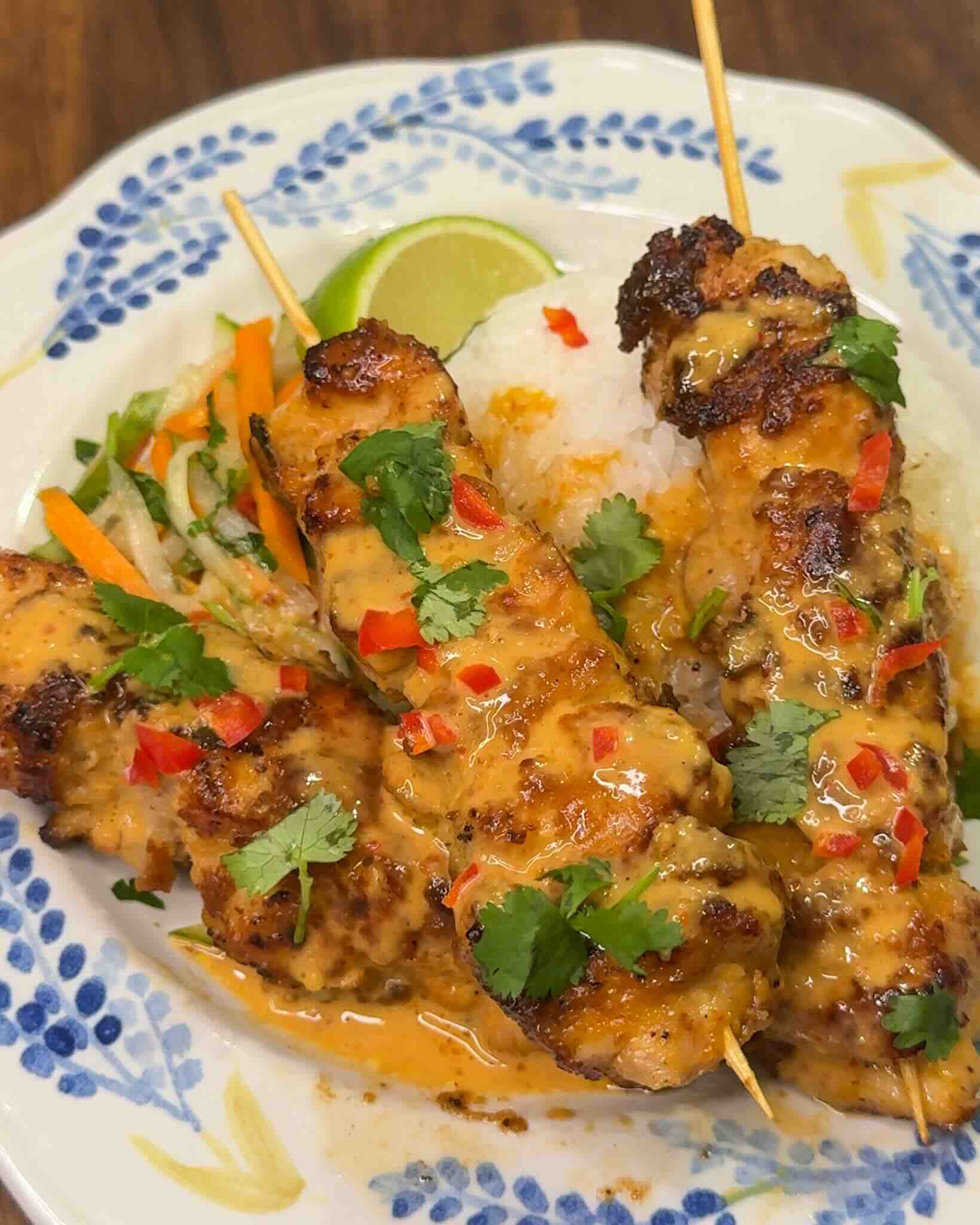 Juicy, smoky chicken skewers coated in a creamy peanut coconut marinade that’s sweet, salty, and just a little spicy - this easy chicken satay is one of those recipes that never fails.
